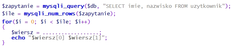 B: zastosować pętlę z poleceniem mysqli_fetch_row